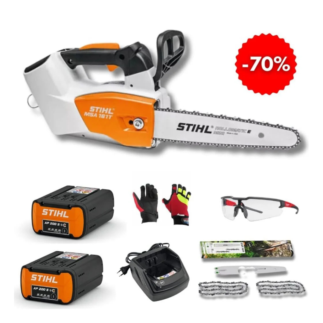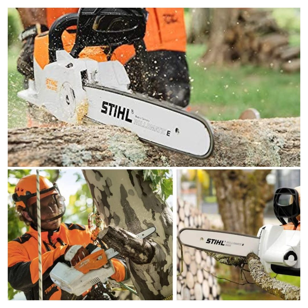 Il freno di emergenza ferma immediatamente la motosega in caso di necessità, mentre il sistema di lubrificazione automatico mantiene la catena ben oliata, garantendo un taglio fluido.
